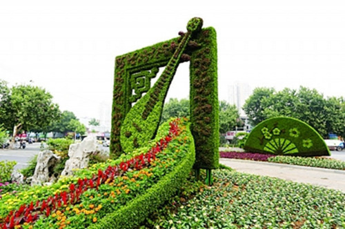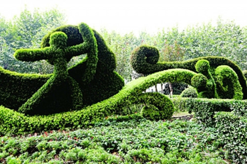 在景区、主题公园和咱们的生活中,通常看见一些艺术作品,其中绿雕便是当中好看的一道风景,随着绿雕式样的不断进展,技巧愈来愈准确,细节样式纹理刻画从而更加细致。“高颜值”不只是能够吸引人们过来赏玩、合影留念,还能美化周围、渲染出欢乐气氛,提升景区、主题公园的品味及形象。绿雕又叫绿色雕塑,被称为世界园林艺术的奇葩,是具有生命的植物雕塑,一般来说内设钢材架构,接着在构架上填充栽培土,再于其上培育一年生及多年生小灌木及草本植物,即运用挂泥插草及卡盆工艺把不同颜色的花草覆盖在结构技巧的表面上,很好地把雕塑技巧与花卉园艺结合在一起,钢架表面上的植物覆盖率起码要得到80%。