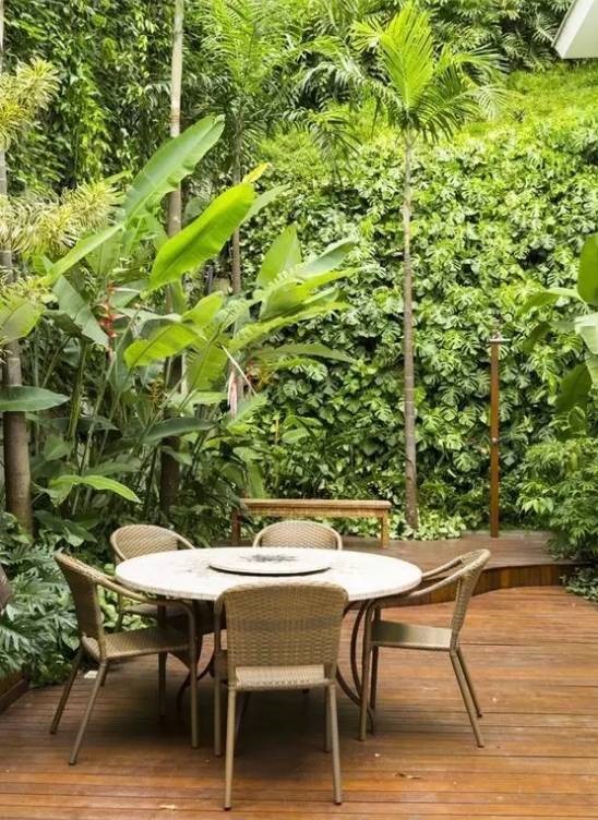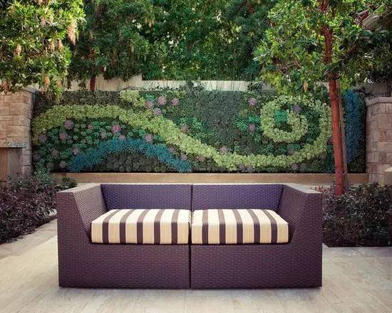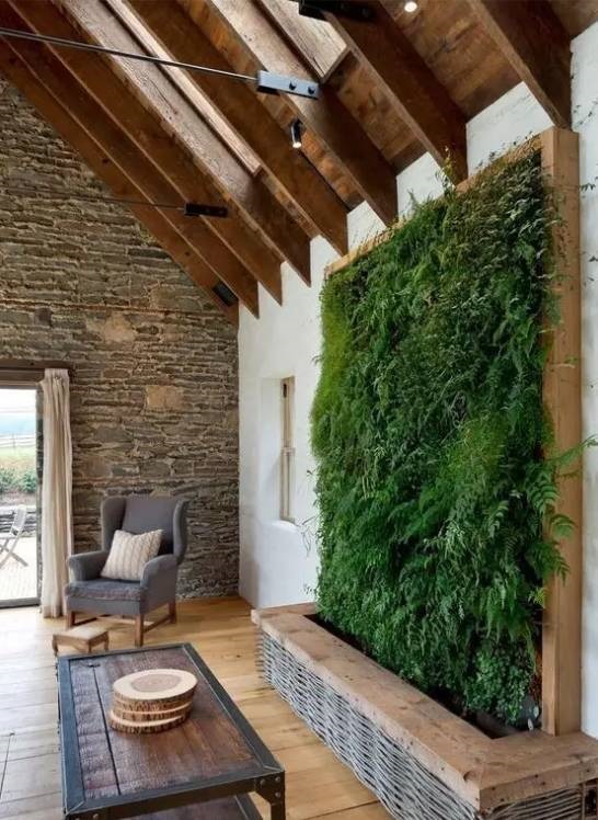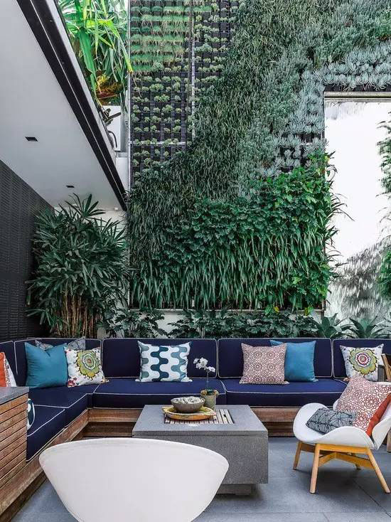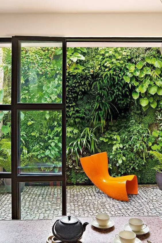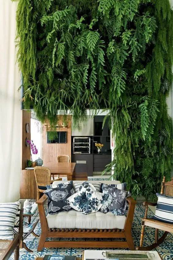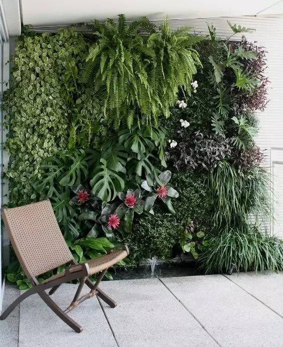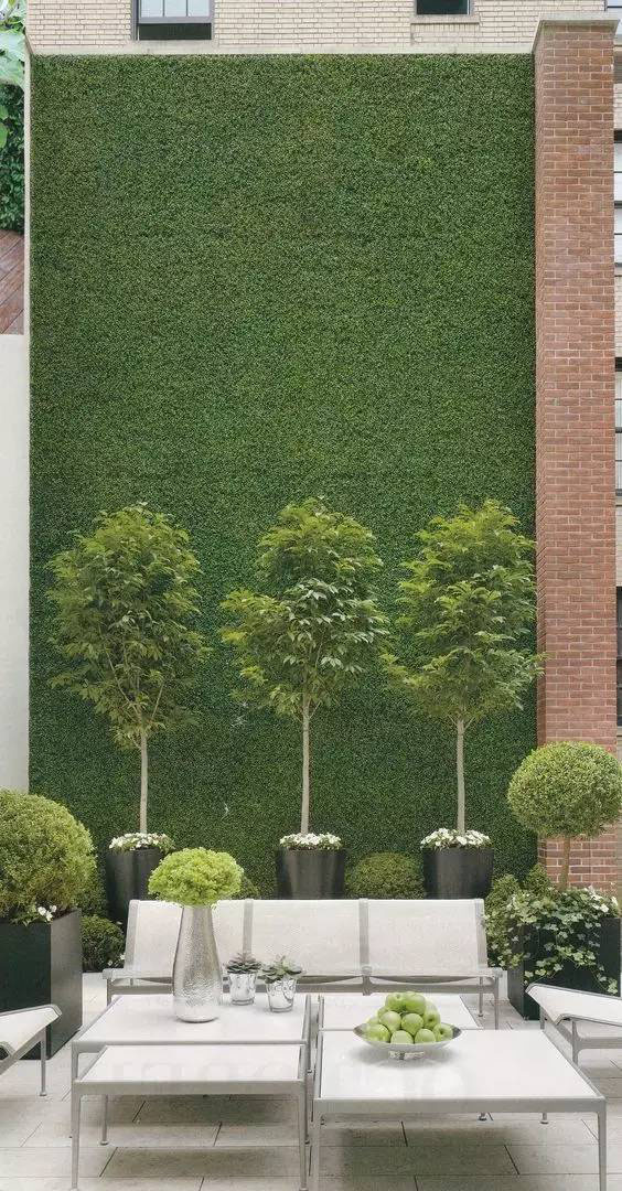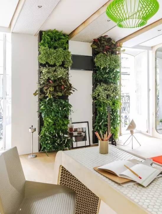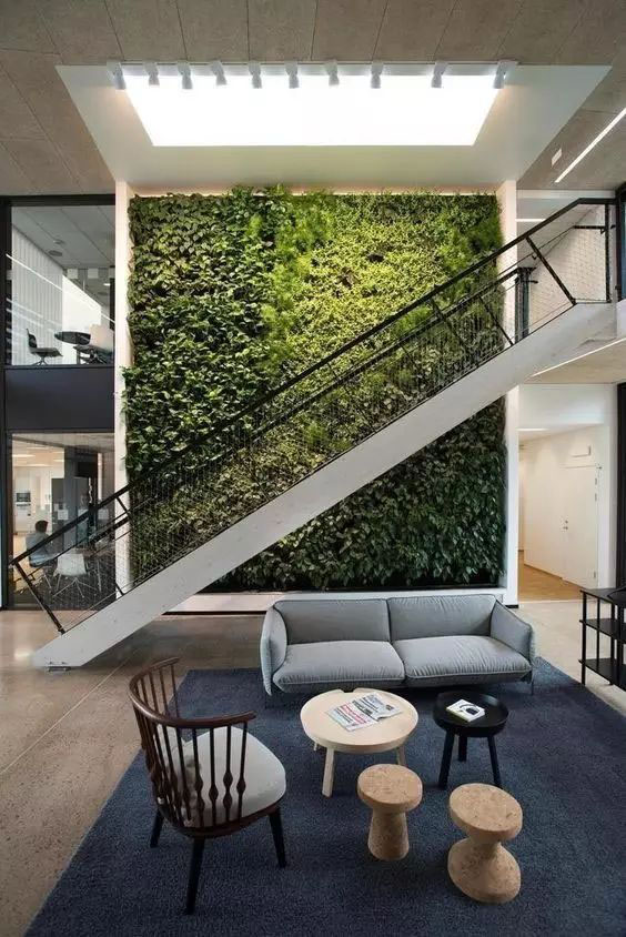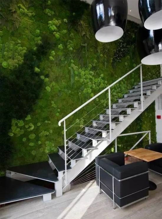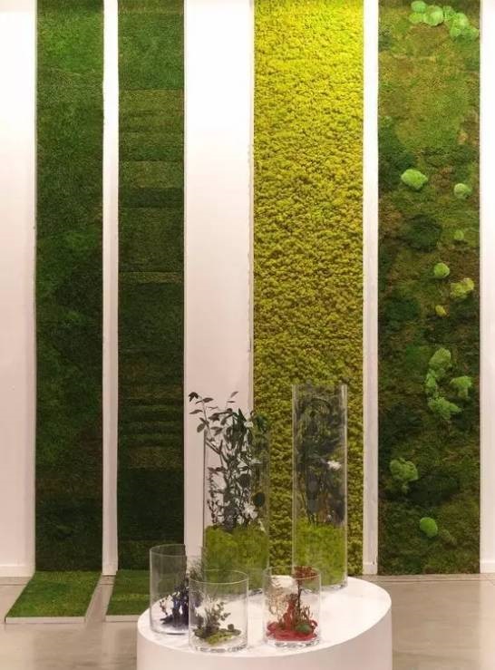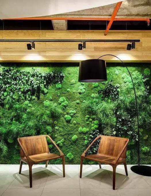 植物墙是用绿色植物编植成的墙体,它既有分隔内外空间的功能,又有葱茏的色彩,给空间带来舒适的美感。